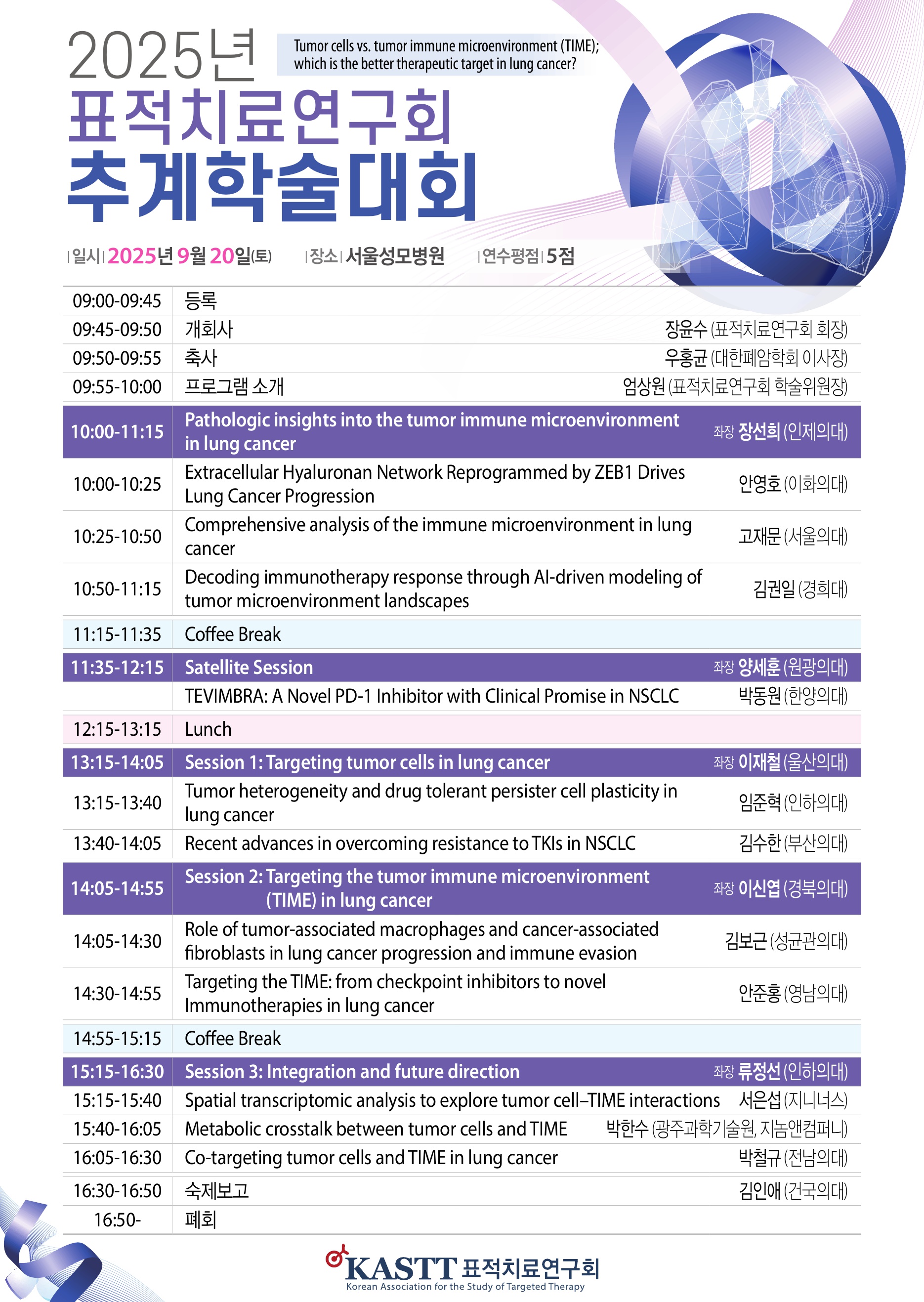 [안내] 2025년 대한폐암학회 산하 표적치료연구회 추계학술대회