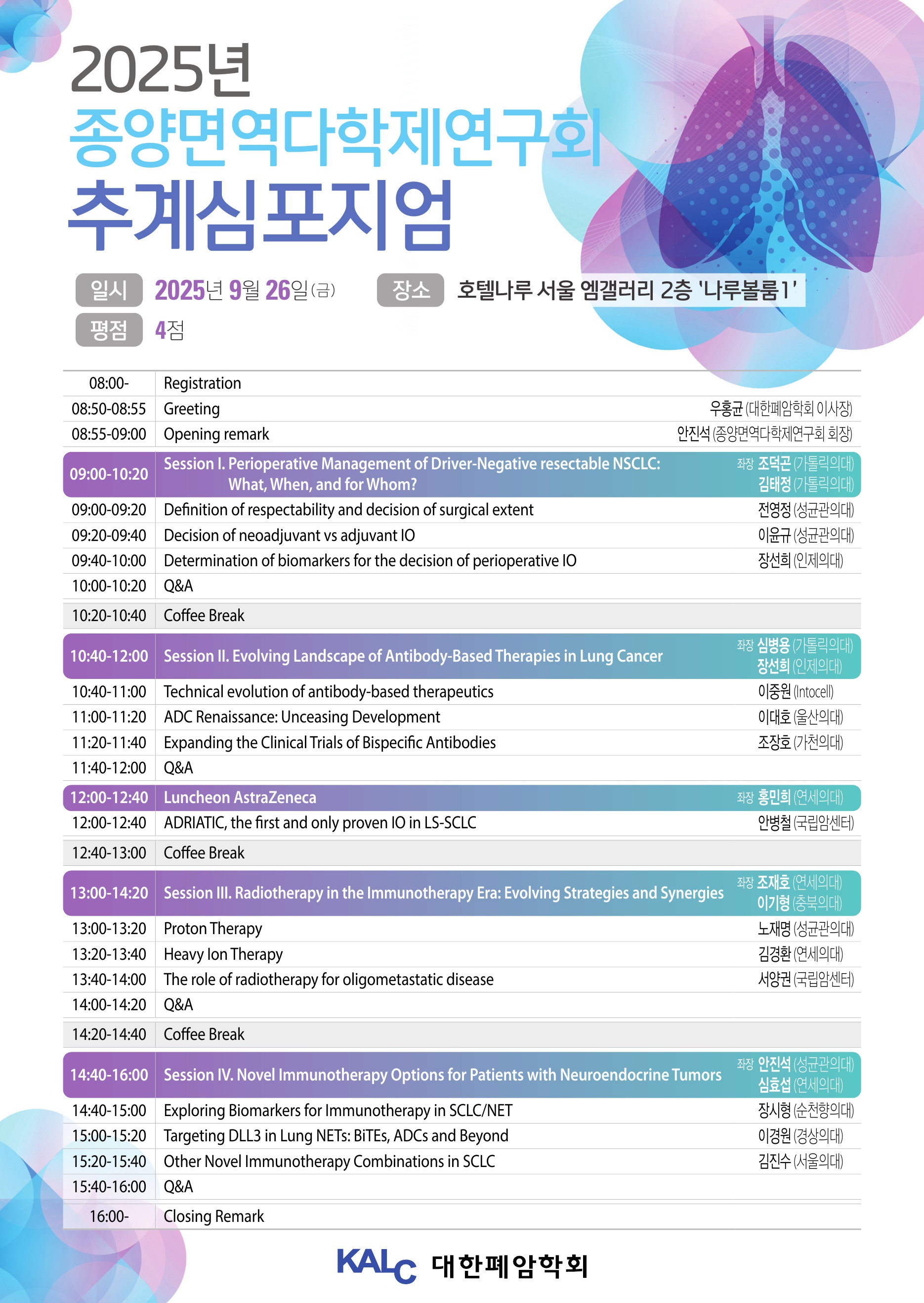 1. 행 사 명: 2025년 대한폐암학회 산하 종양면역다학제 연구회 추계심포지엄