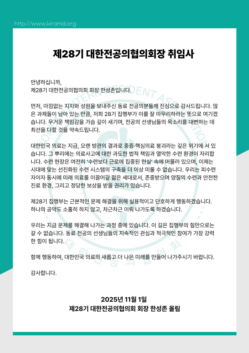 [대전협 보도자료 251103] 대한전공의협의회, 제28기 집행부 공식 출범